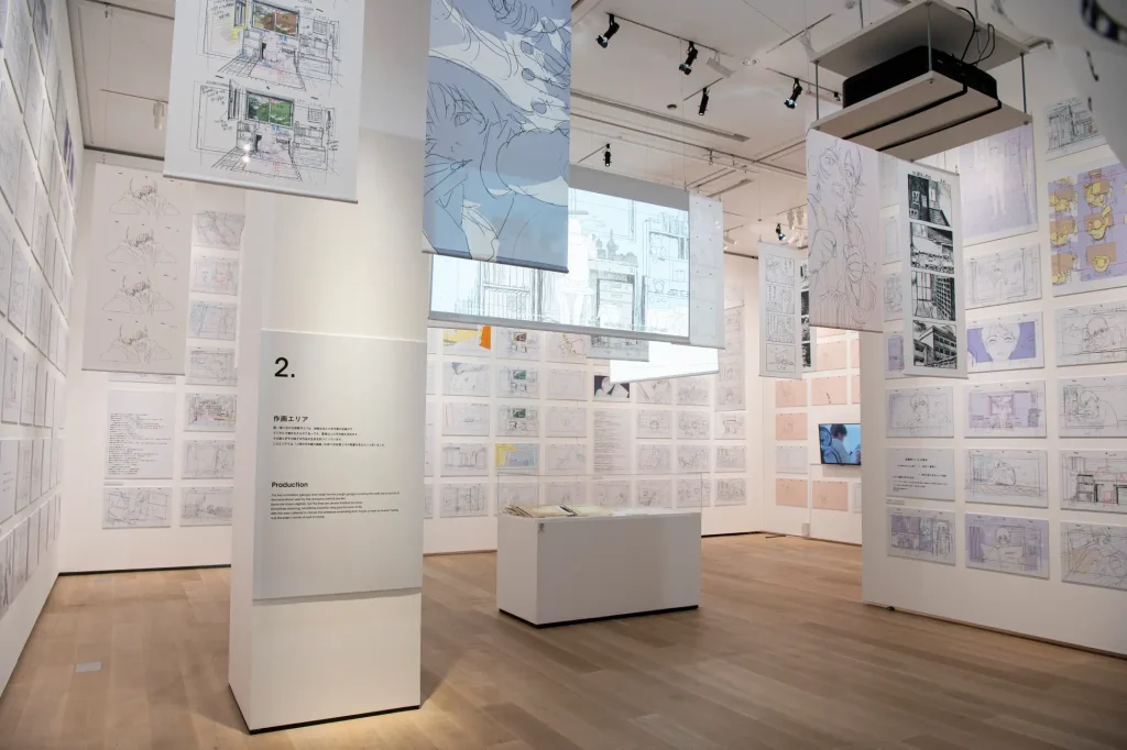 会場では、劇場アニメ制作の過程で生まれた原画や設定画、メモなどを多数展示。完成映像だけでは見えない、線の揺らぎや筆致の迷いまでもが可視化され、アニメーションが感情の積み重ねであることを実感できる構成となっている。押山監督をはじめとするアニメーターたちが作品に注いだ熱量が、展示空間全体から伝わってくる。