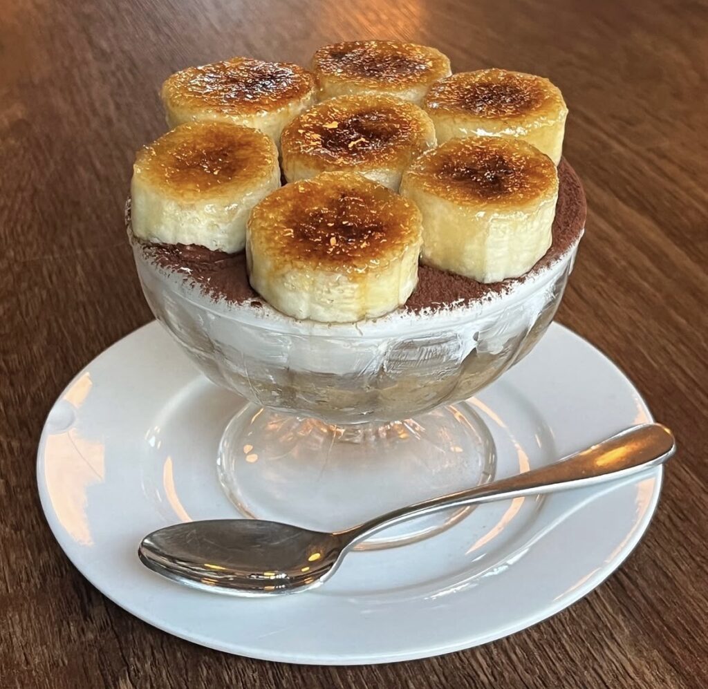 今なお話題のエリアですが、このお店を知ったきっかけは、知人のインスタのストーリーズでした。そこに映っていた、バナナがブリュレされたティラミスに一目惚れ。「これは絶対に行きたい」と即決。