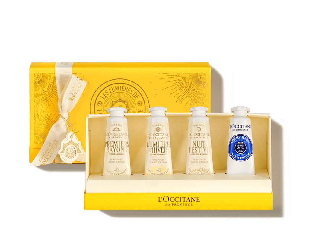 ロクシタンのベストセラー「シア ハンドクリーム」と限定の3つの香りが同梱されています。