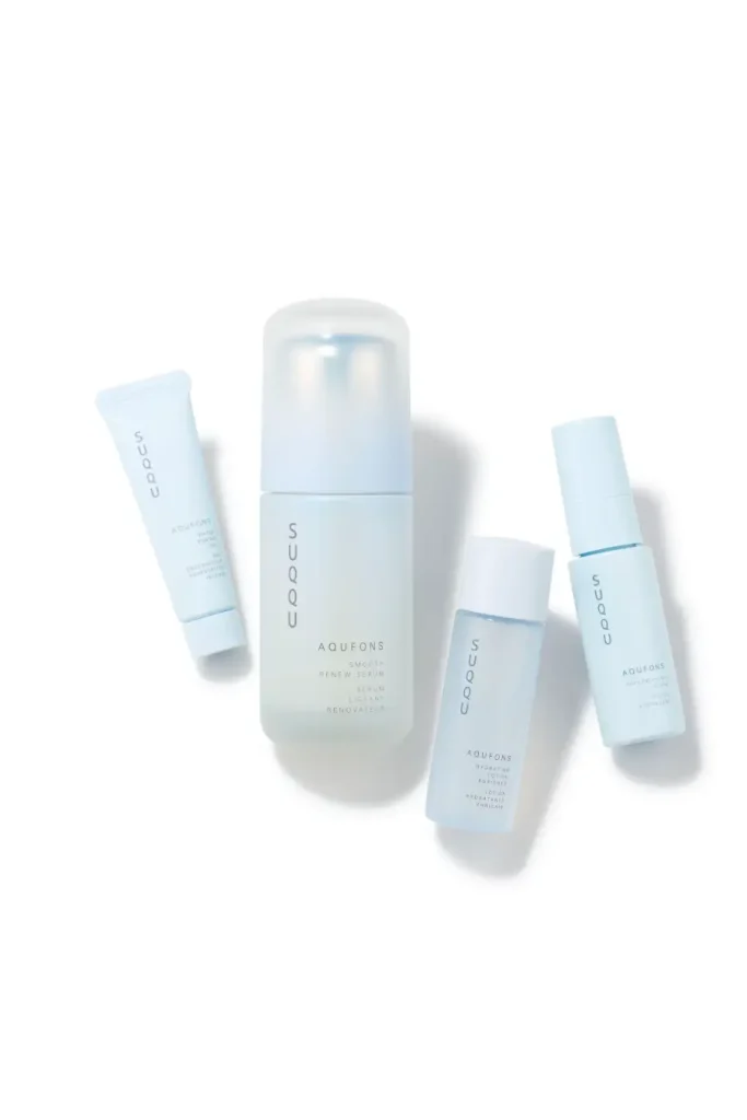 人気のスキンケアライン「AQUFONS」の、3ステップケア+ジェルマスクを体験できる限定キットが2種類登場。 「美容液先行システム」を踏襲した悩みに合わせて2種類から選べる美容液を中心に、清らかな艶肌へ導くライン構成です。